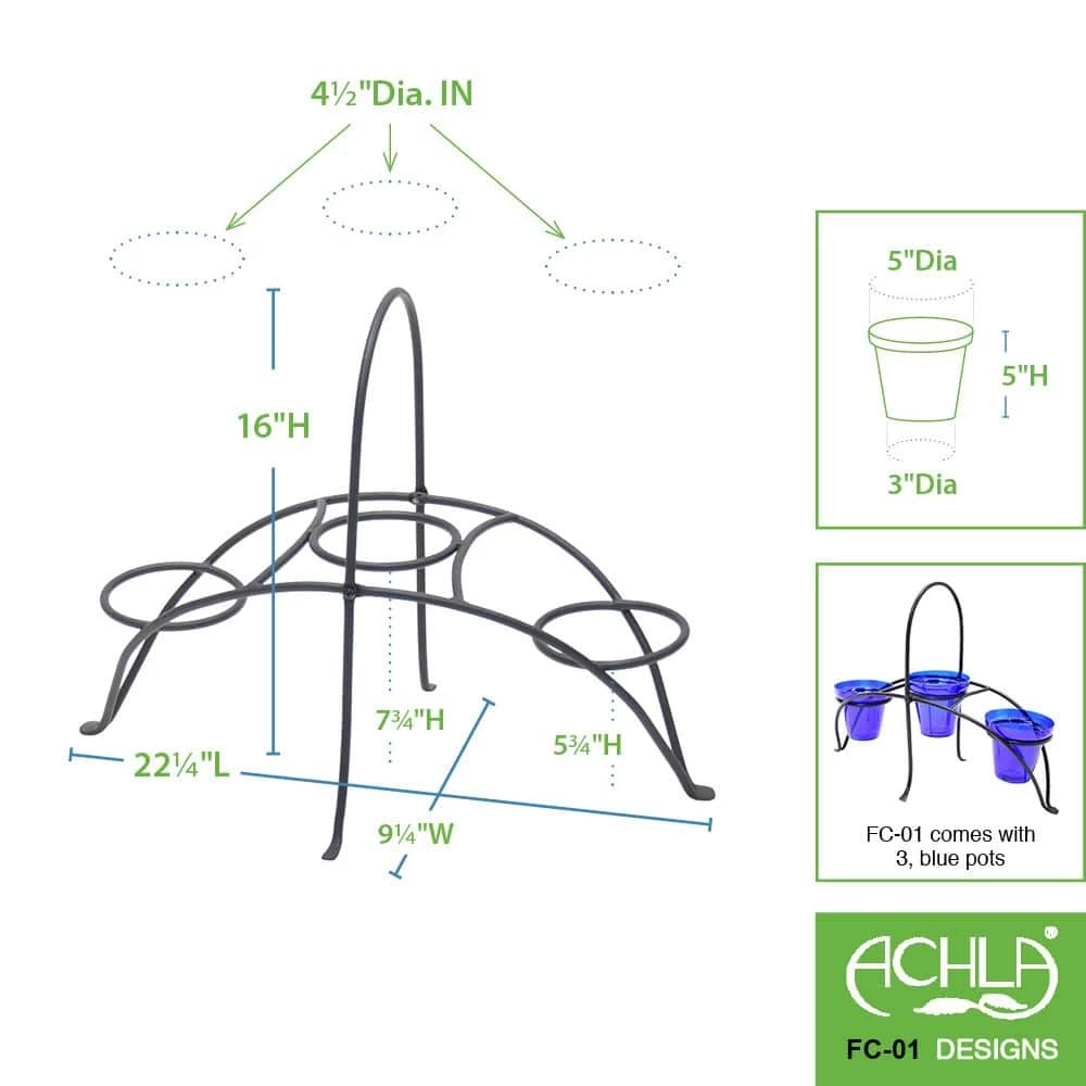 The Achla Designs wrought iron Herb Caddy makes an excellent addition to any home, patio, balcony, porch or terrace garden. This sturdy footed stand features 3 rings designed to fit 3 cobalt blue glass flowerpots. The basket-style carrying handle allows for easy transport and a decorative style. Ideal for small spaces, place this herb caddy in your kitchen, next to a window or outside on a balcony or patio table or in the garden. Wherever you use it, this stand will allow you to grow and enjoy fresh herbs with ease. Whether the stand is used indoors or outdoors, its classic design also works well with orchids, violets, succulent or cactus plants. As a centerpiece, place fresh cut flowers or candles in the 3 pots or decorate the stand with silks and other seasonal decorations. Achla Designs makes a full line of plant stands for indoor and outdoor use in many shapes and decor styles. See our full line of plant stands and fine garden accessories for every patio, porch, terrace, deck or balcony container garden, large or small.