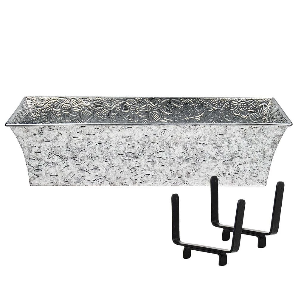 These brackets are designed to securely hold flower boxes to the top of a deck or porch railing. Fasten the brackets down to the rail at your preferred distance apart and boxes are captured within the U-shaped holder. In 2 widths to fit standard 4 and 6 in. railings. Use with Embossed Flower Box (C-04) or Small Galvanized (C-08) or Small Copper Plated (C-08C) Flower Box.