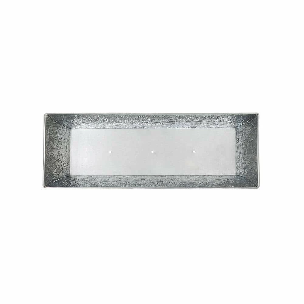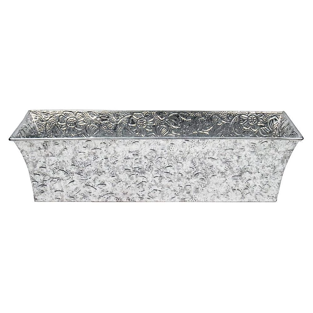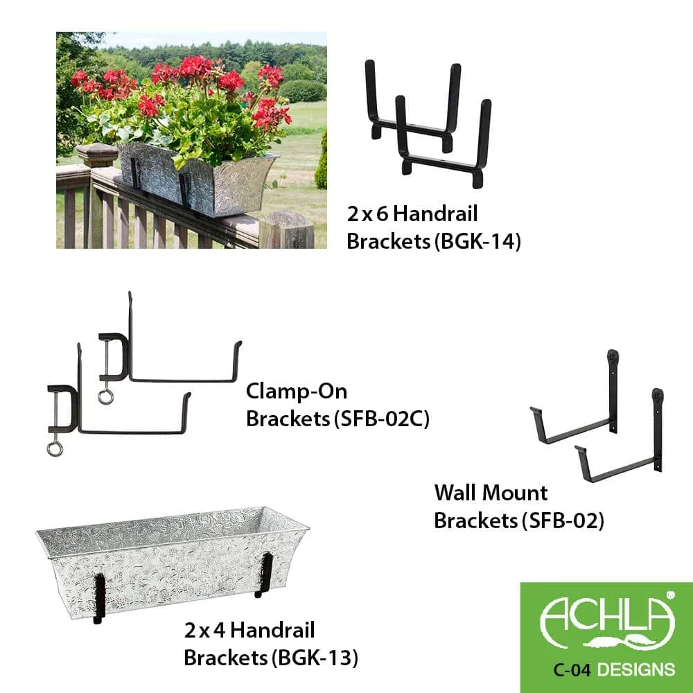 An embossed floral pattern dresses up these traditional style planters. Embossed Flower Boxes are made from galvanized steel, giving them the folksy vintage quality of an antique market find. All flowerboxes have drain holes for direct planting. Use any of our coordinating Achla Designs mounting hardware and brackets: Posy Flower Box Bracket (VFB-02), Handrail Bracket (BGK-13/14) Wall-Mounted Bracket (SFB-02) or Clamp-On Bracket (SFB-02C).