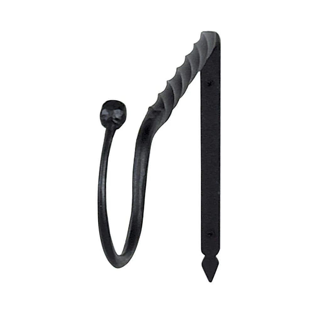 - Hand-forged wrought iron: with traditional techniques from square bar stock, the wide upturned hook is tapered with a ball-end; stainless steel hardware is included, but may not be suitable for all applications (for heavy items or masonry, specialty hardware is recommended)