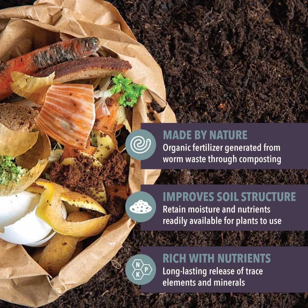 - Naturally amend gardening with worm waste to increase yields from food-producing gardens