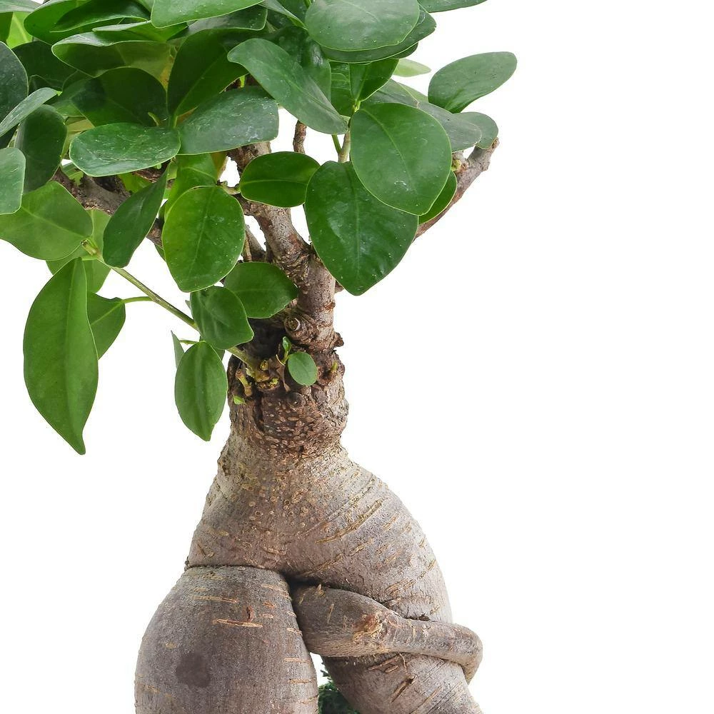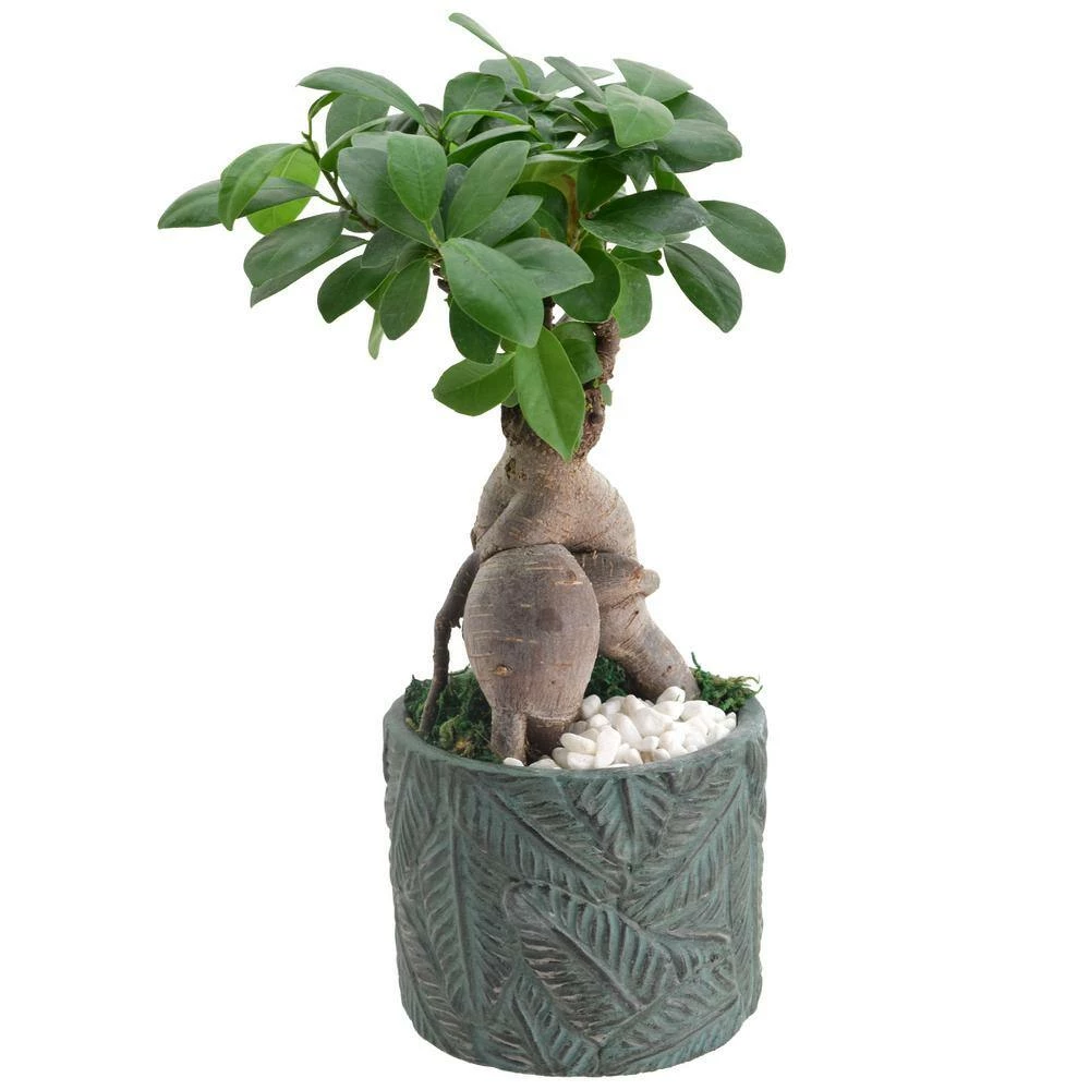 Looking for an easy-care and engaging indoor plant for your home or to send as gift. This live Ginseng Ficus Bonsai arrives with minimal care requirements. Providing a warm humid environment with bright indirect light and watering when dry to the touch is all this plant needs. Recognized as a statement plant, this potted beauty intrigues those who view the above soils seemingly twisted roots. Keenly appreciated as an instant decor item for the home or office, many people give these as gifts for meaningful occasions. Plant ranges 12 in. to 14 in. H, including container.