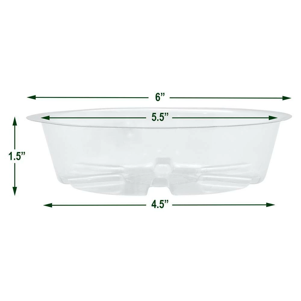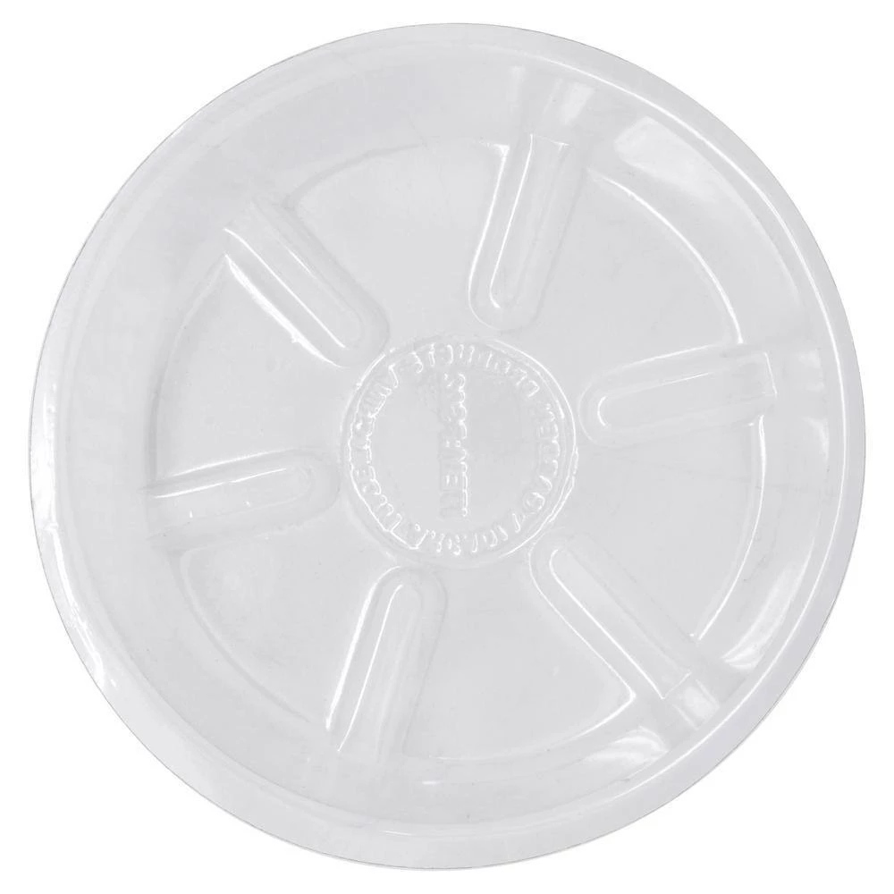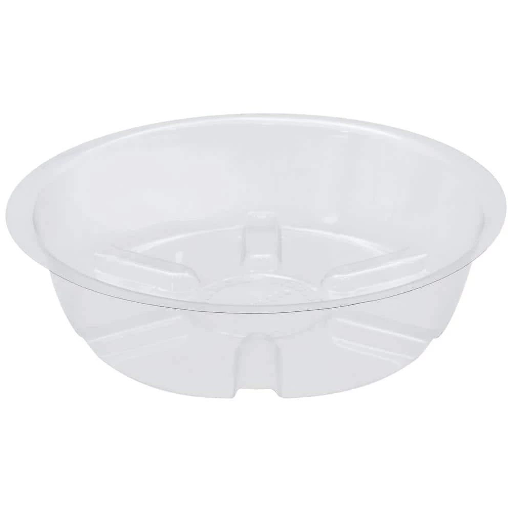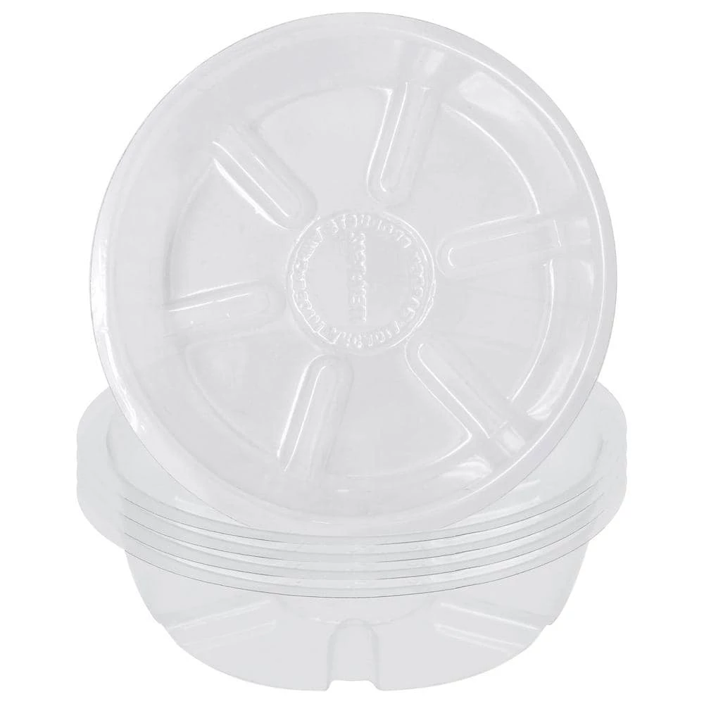 This 5-pack of saucers is an essential accessory for any plant owner, these clear plastic saucers collect excess water from potted plants to protect floors, carpets, tables, decks and other surfaces while additionally preventing the plant’s roots from becoming over-saturated. Grooves in the saucer helps to prevent the plant from resting in collected water. The clear, minimal design is perfect for being functional without distracting from the plant and its container. These durable saucers can be used either indoors or outdoors, making them a great addition to any area.