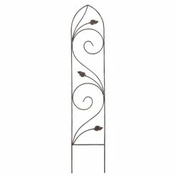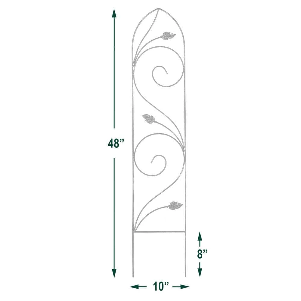 The Autumn leaf trellis adds style while creating a focal point to any garden or gathering place. It features an arched trellis with a scrolling leaf design in a weather resistant patina finish. This quality trellis is durably crafted from powder coated metal. Perfect to support climbing plants in a pot or in the ground. It can also be used against a wall for an artistic centerpiece. The Arcadia Garden Products Collection is designed for decorative and functional unity. It includes accessories and structures that contribute fun and flair to contemporary landscapes including eco-friendly solutions for earth-conscious gardening practices.