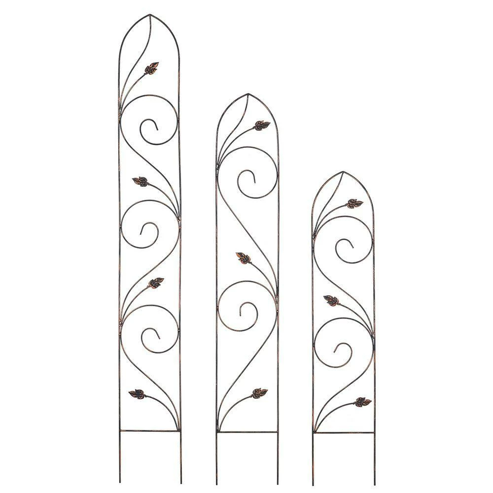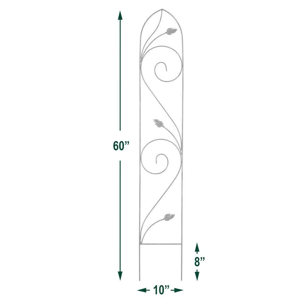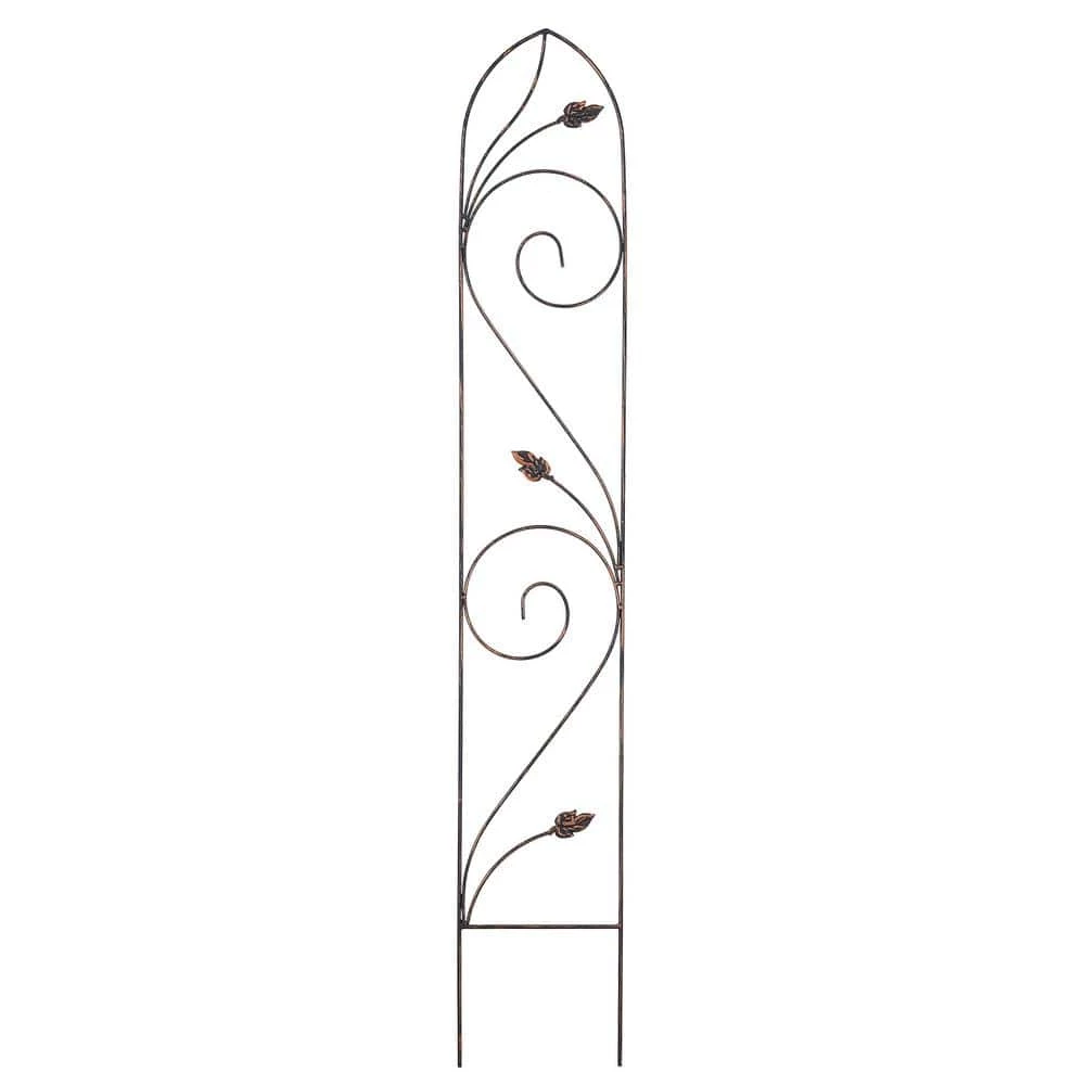 The Autumn leaf trellis adds style while creating a focal point to any garden or gathering place. It features an arched trellis with a scrolling leaf design in a weather resistant patina finish. This quality trellis is durably crafted from powder coated metal. Perfect to support climbing plants in a pot or in the ground. It can also be used against a wall for an artistic centerpiece. The Arcadia Garden Products Collection is designed for decorative and functional unity. It includes accessories and structures that contribute fun and flair to contemporary landscapes including eco-friendly solutions for earth-conscious gardening practices.