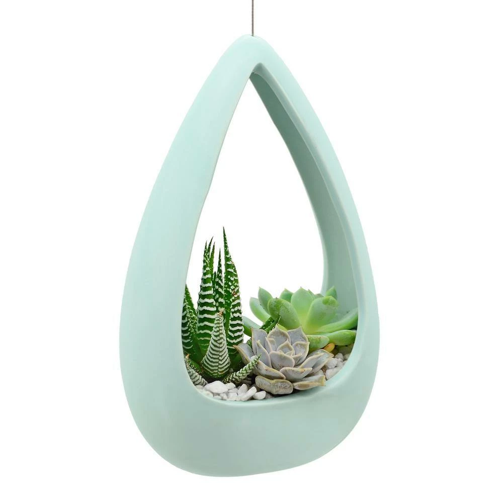 These cone shaped hanging planters by Arcadia Garden Products are a modern and unique way to add foliage to any home or office. Hang from a tree, bracket or window. You can also use as a bird feeder or sit on a table with its flat bottom. They are made from high quality ceramic and include an attached double wire for easy hanging. These stylish planters are perfect for both indoor or outdoor usage. Great for air plants, cactus, and succulents.
