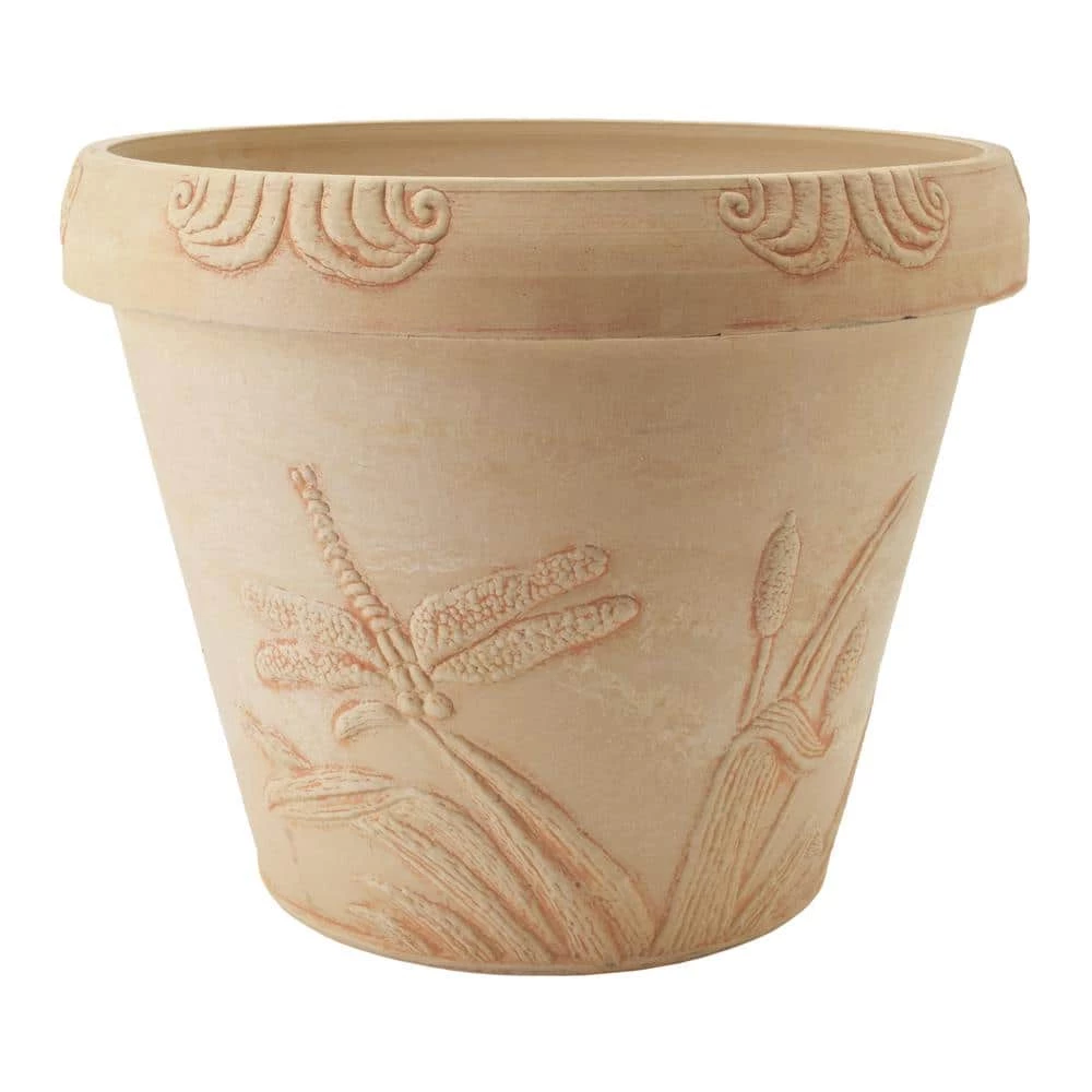 Give a nod to nature with this textured dragonfly design. A gently curved rim modernizes the classic silhouette. The PSW Pot Collection is named for its signature material blended from Plastic, Stone and Wood.