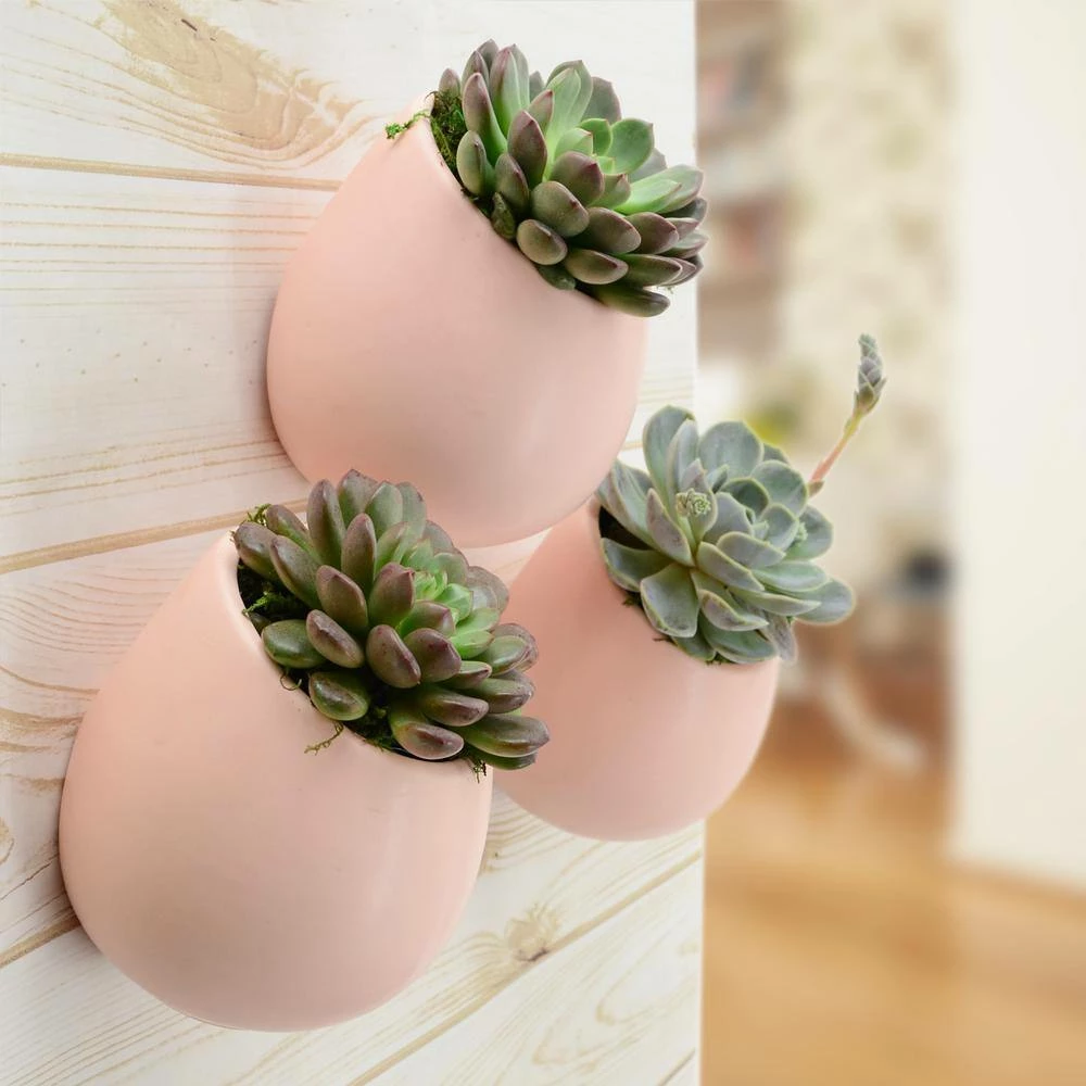 Wall planters by Arcadia Garden Products are a modern and unique way to add foliage to any home or office. they are made from high quality ceramic and are flat on 1 side for easy mounting on a wall. they also include an inner liner for easy planting and to protect walls from moisture. these stylish planters are perfect for both indoor or outdoor usage. Great for cactus, herbs, succulents and small foliage.