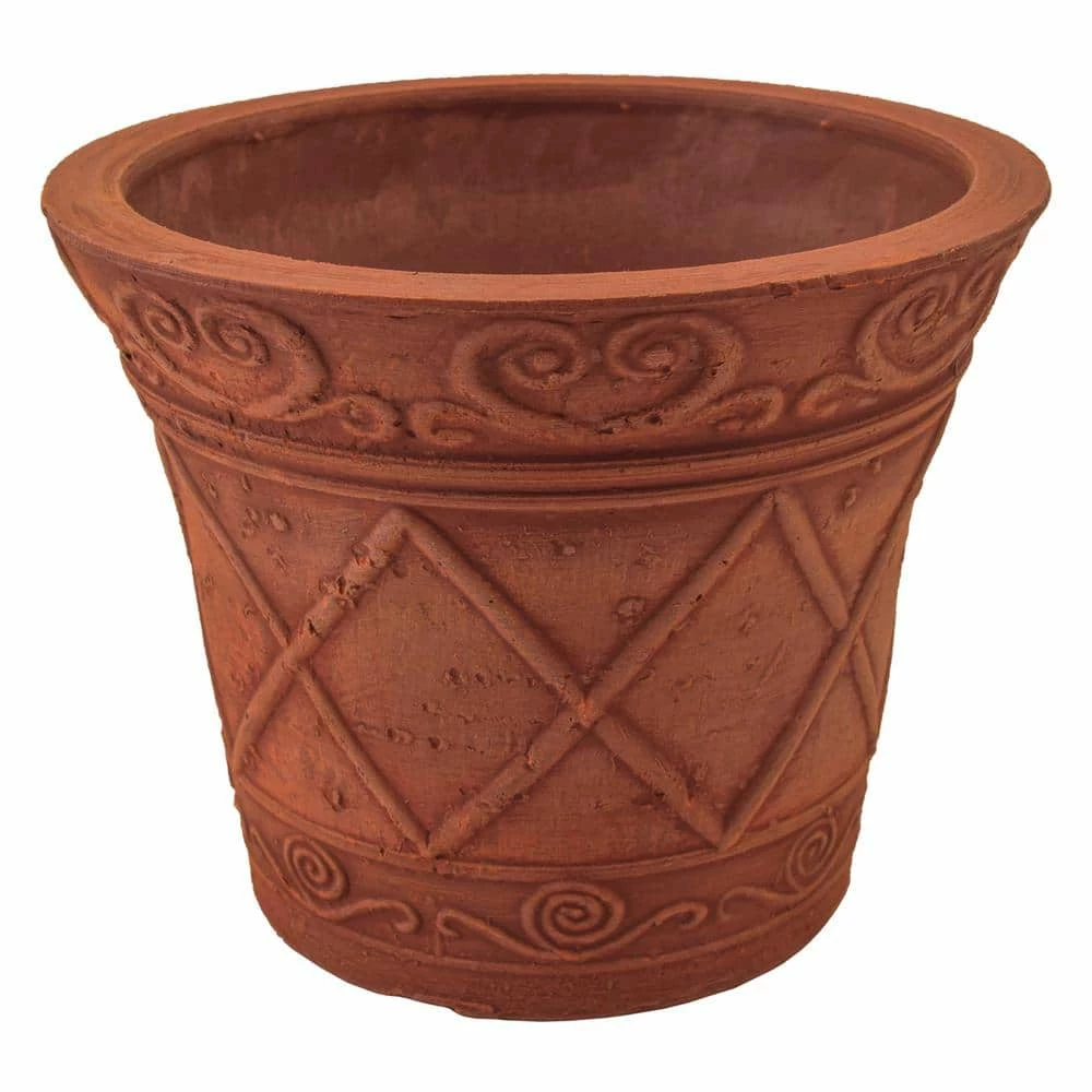 A lightly weathered finish adds character to this patterned design. A gently curved rim modernizes the classic silhouette. The PSW Pot Collection is named for its signature material blended from Plastic, Stone and Wood.