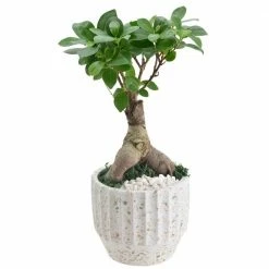 Arcadia Garden Products 5 in. Ginseng Ficus Bonsai White Round Speckled Splash Ceramic Planter