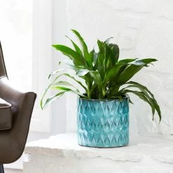 Southern Patio Beehive Large 16 in. x 12.3 in. Navy High Density Resin Planter with Saucer