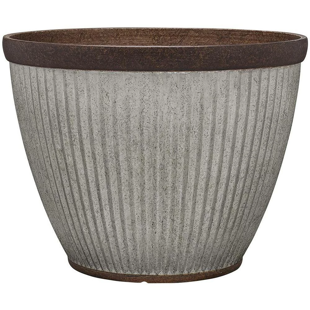 Give your favorite succulents or perennials a happy home with the Southern Patio 20.5 in. Dia Rustic Resin Outdoor Planter Urn Pot. This large planter pot is perfect for medium and large blossoms, providing ample room for up to 40 qt. of loosely-packed potting soil. This bundle comes with 3 outdoor planter urns. Crafted from durable resin, the indoor planter pot has the look of a charming old-fashioned planter but is lighter and more durable for everyday use. The bowed body features fluted, corrugated lines with a galvanized finish that mimics the look of the tin without worrying about rust. A brown finish accents the rim and base for a weathered, faux-oxidized look. Whether you’re starting an herb garden, cultivating aloe, or just displaying prize flowers, this backyard outdoor flower urn is a handsome and long-lasting vessel. Get your garden eutopia started and blooming with the Southern Patio 20.5 in. Dia Rustic Resin Outdoor Planter Urn Pot.
