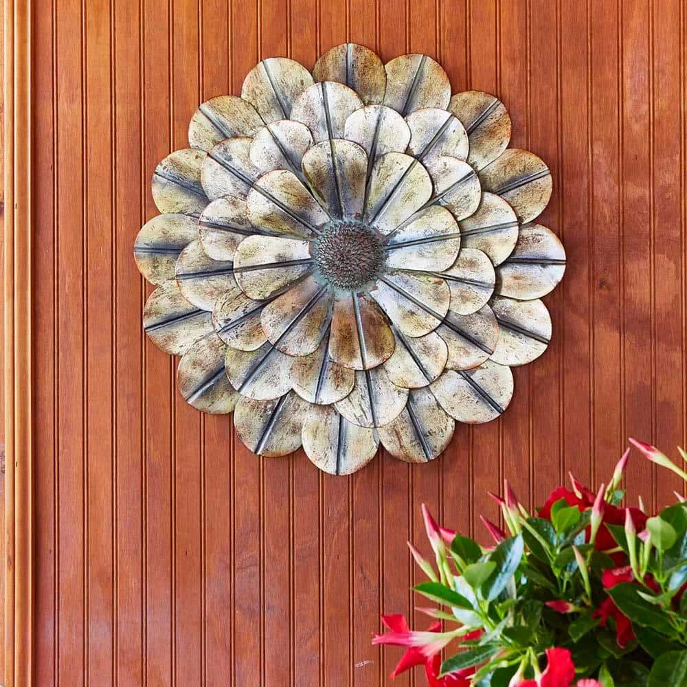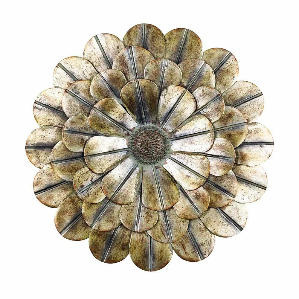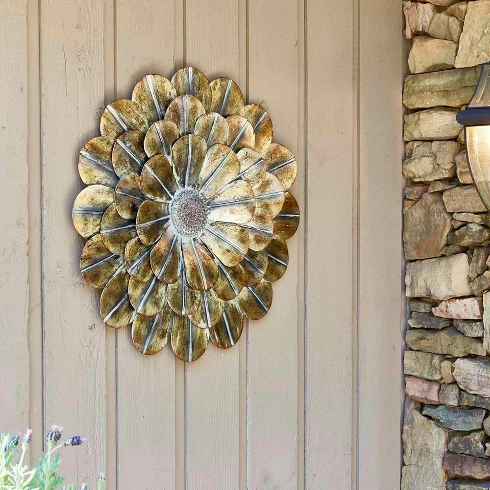 This outdoor metal wall art is the perfect addition for the designer who loves bringing floral elements of interest into their home. The golden design is perfect whether placed inside the home or outdoors. The flower outdoor wall decor’s durable construction and weather-resistant finish will outlast the elements and offer beauty for years to come.