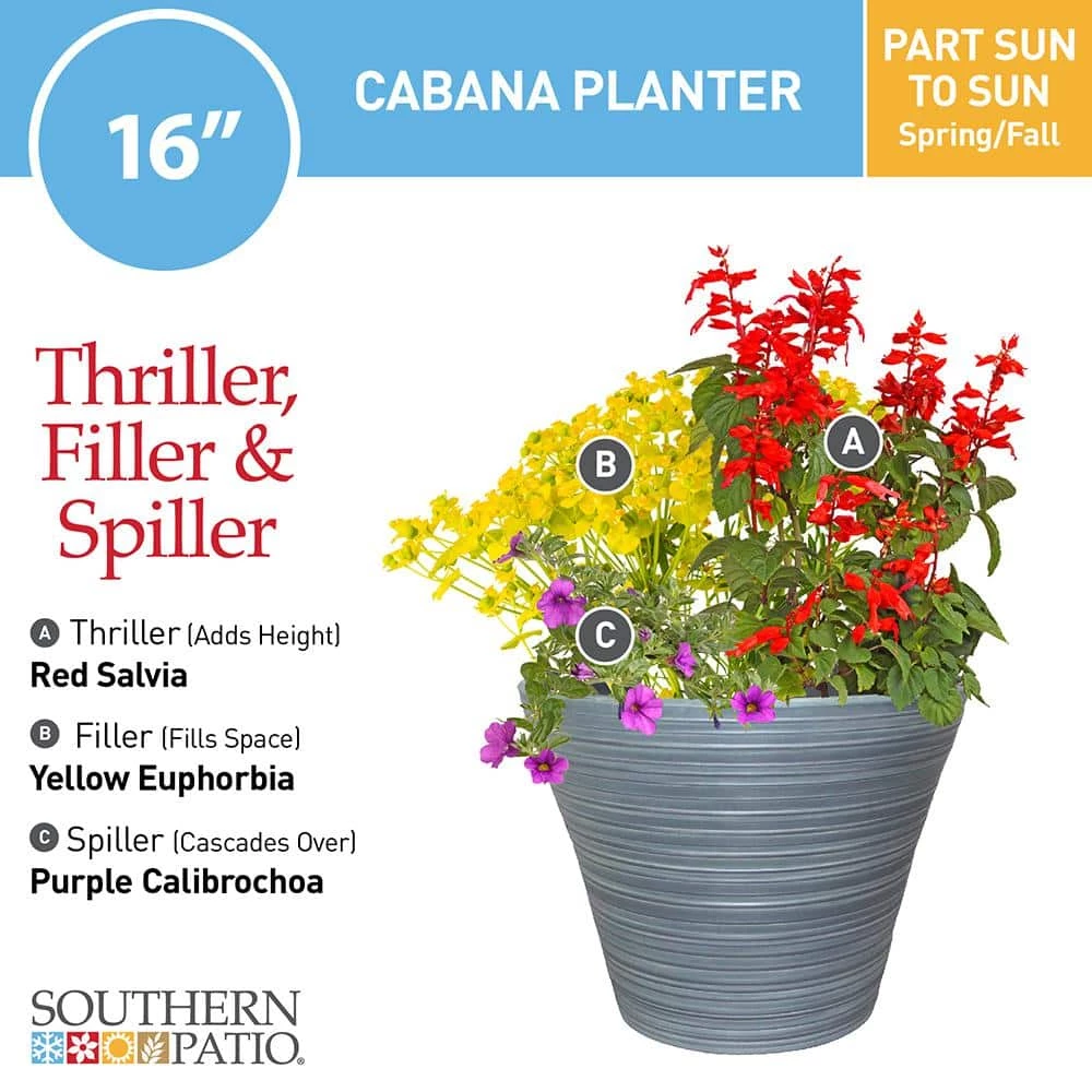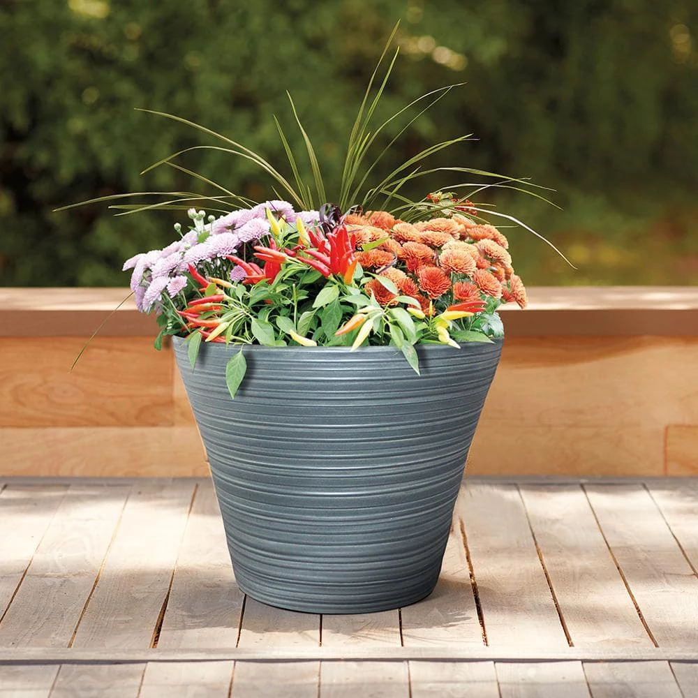 The Cabana large outdoor planter is perfect for the seasoned gardener who wants to showcase stunning floral arrangements. This 16 in. pot is simple in material and design yet graceful in stature. A High-Density Resin (HDR) construction protects against harmful UV rays and resistance to cracking.