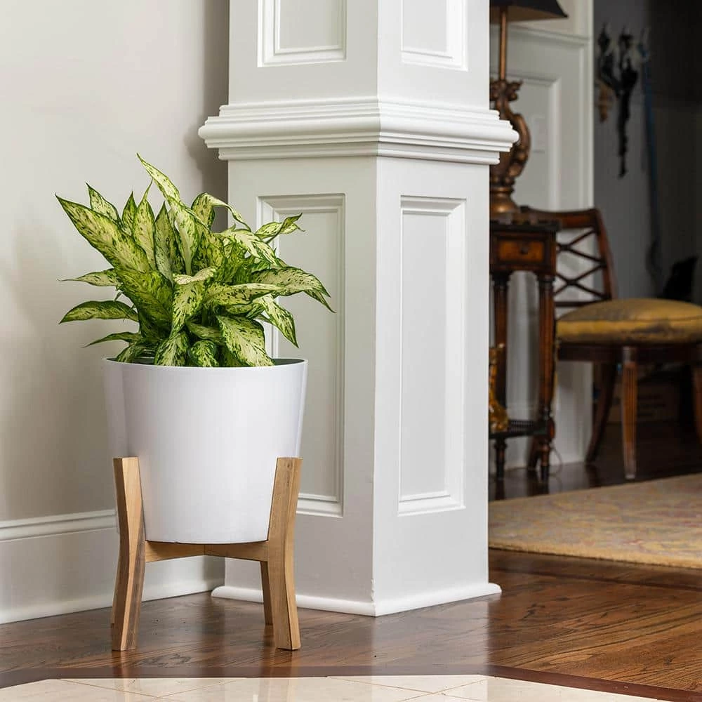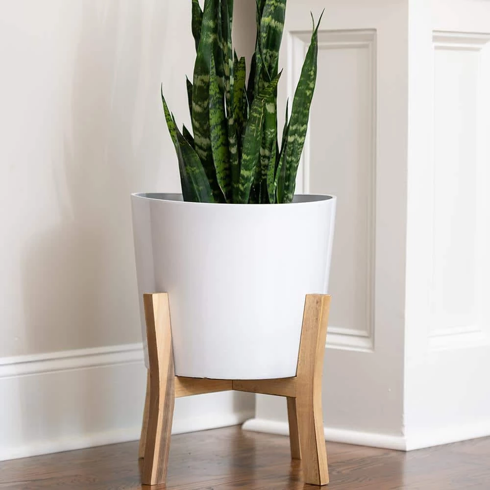 A classic indoor planter with stand is perfect for the pragmatic gardener who wants to display stunning floral arrangements. The wooden stand enhances the container garden, putting all shrubbery on display. These planters are a cost-efficient alternative to ceramic or stone planters.