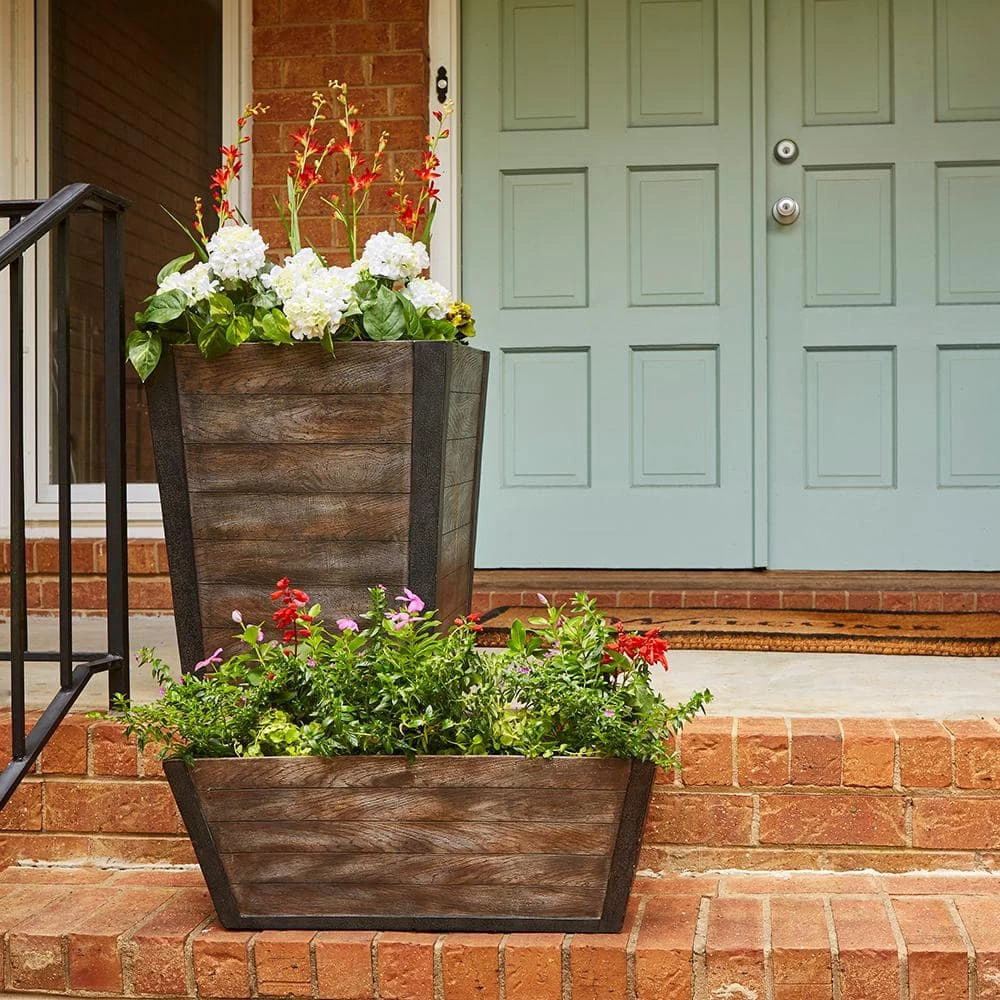 Accent your outdoor space with this resin deck box planter by Southern Patio. A lightweight and durable alternative to heavy ceramic planters, it features a drainage hole with a plug to protect your plants from overwatering. This planter can support greenery ranging from tall trees to smaller shrubbery.