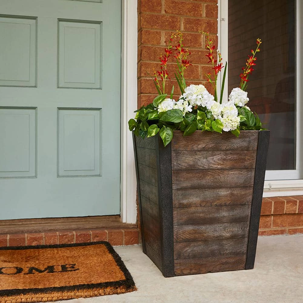 - Resin-based container garden lasts longer than traditional wooden barrels