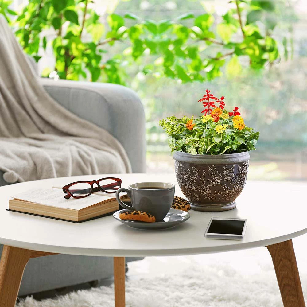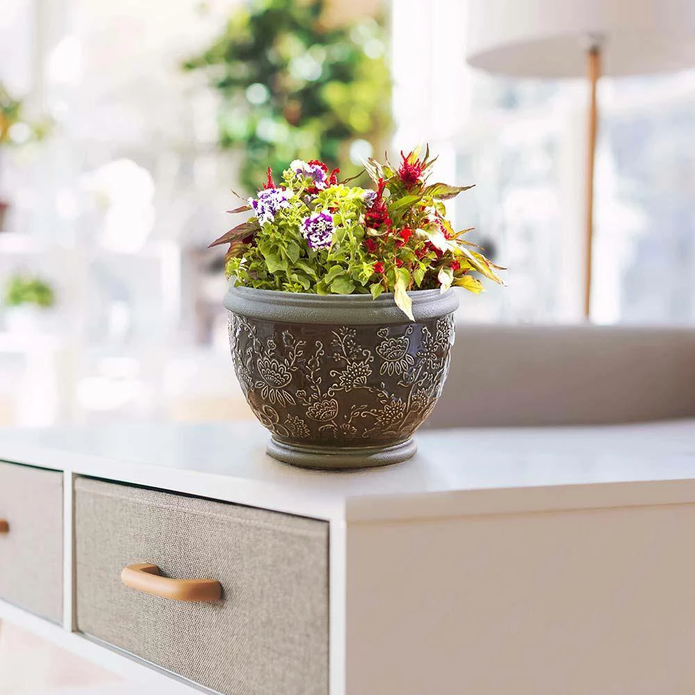 With floral detail and authentic construction, these ceramic pots create the perfect indoor container gardens. Constructed to coordinate with just about any indoor decor, these will work best when paired with bright floral or succulent plants. These authentic ceramic planters are heavy-duty and one of a kind.
