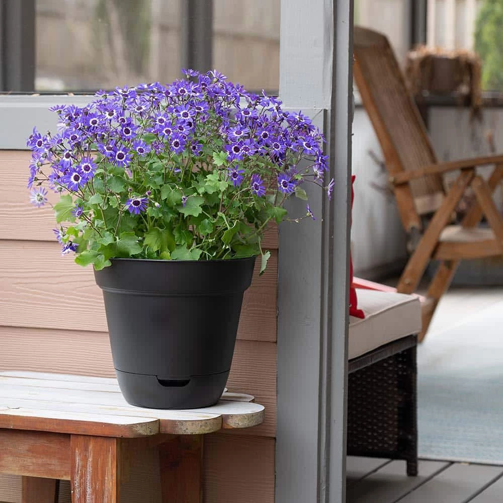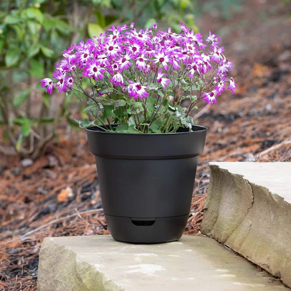 - Lightweight self-watering flowerpot crafted from durable resin