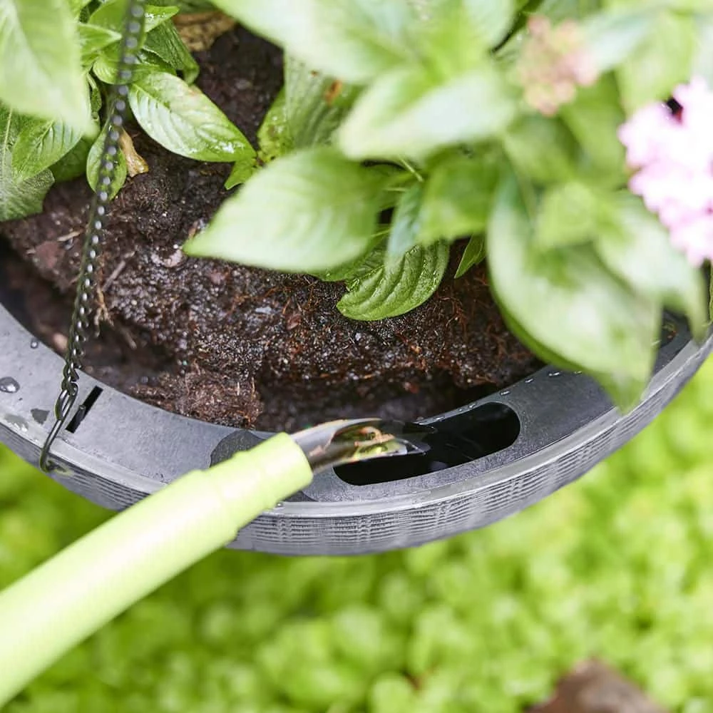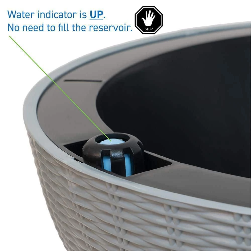 - Self-watering hanging basket planter has a convenient indicator that tells you when to add more water