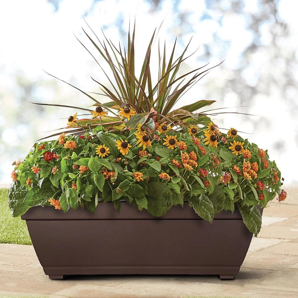A basic, yet efficient plastic planter, the durable Newbury is practical for home, garden and patio. This reliable planter features a smooth surface that is easy to clean and maintain year round. The poly-resin construction of the Dynamic Design planter series provides a sturdy product that is light weight and UV protected.