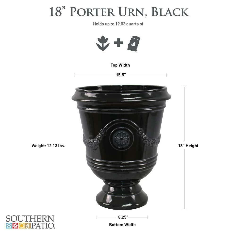 Gloss and elegance give Southern Patio’s Porter Urn its mystique to gardens, poolside patios and outdoor gardenscaping. With hand-crafted detail and a sleek finish, this urn pairs well with draping flower arrangements. These planters are a cost efficient alternative to ceramic or stone planters.