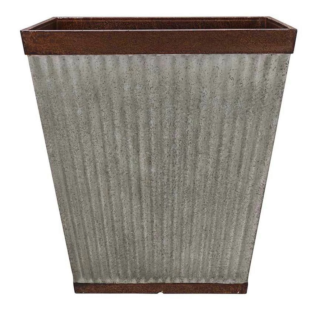 - Crafted from lightweight and durable resin with a corrugated look and faux galvanized finish