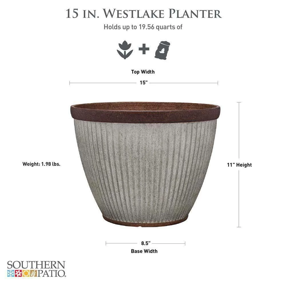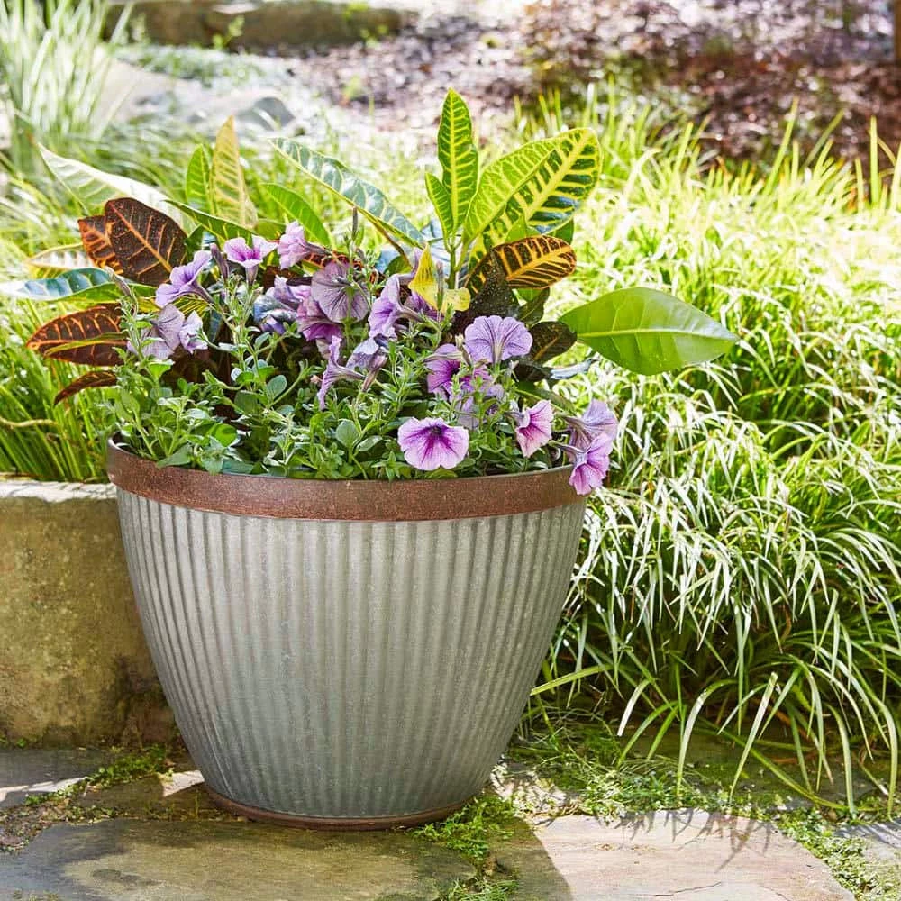 The Westlake faux-galvanized planter adds an old-fashioned feel to any outdoor living area with its weathered and rusted appearance. A grooved pattern introduces texture, while a galvanized finish emphasizes the decorative outdoor planter’s time-honored traits. Lightweight and durable, this resin garden pot is resistant to the elements, protected against fading, and sure to provide a safe environment for any shrubbery to flourish.