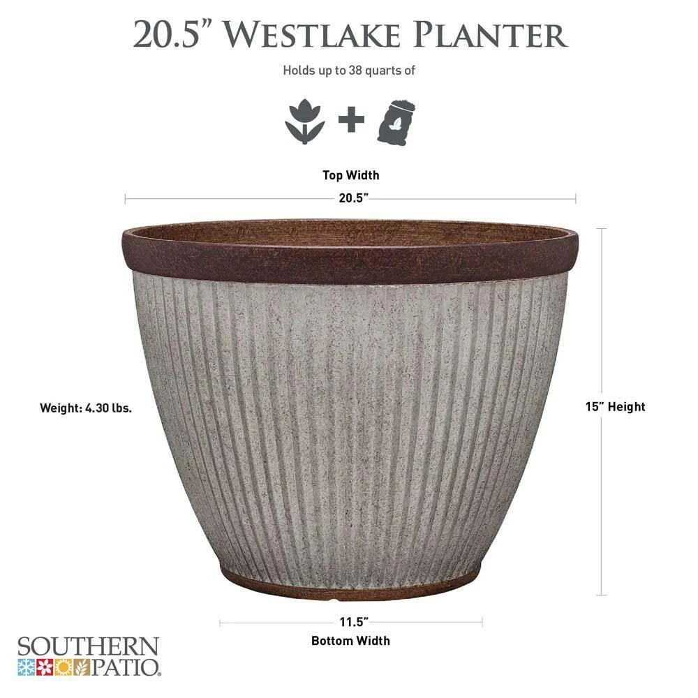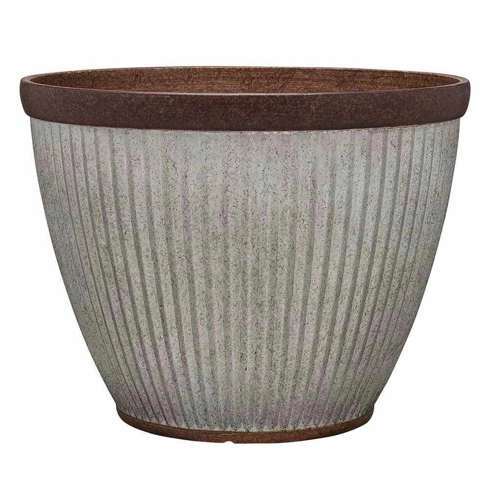 The Westlake faux-galvanized planter adds an old-fashioned feel to any outdoor living area with its weathered and rusted appearance. A grooved pattern introduces texture, while a galvanized finish emphasizes the decorative outdoor planter’s time-honored traits. Lightweight and durable, this resin garden pot is resistant to the elements, protected against fading, and sure to provide a safe environment for any shrubbery to flourish.